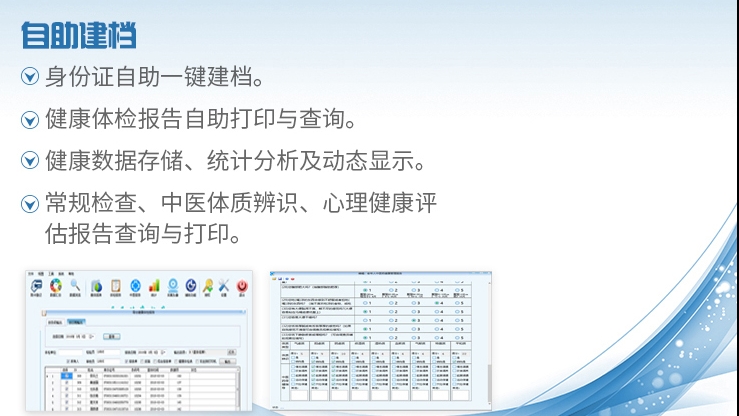 支持智能監(jiān)測設(shè)備接入,進(jìn)行數(shù)據(jù)的長期追蹤、分析與評估。數(shù)據(jù)按及地方標(biāo)準(zhǔn)建立,內(nèi)置中醫(yī)體質(zhì)辨識,醫(yī)生可現(xiàn)場分析中醫(yī)體質(zhì)。